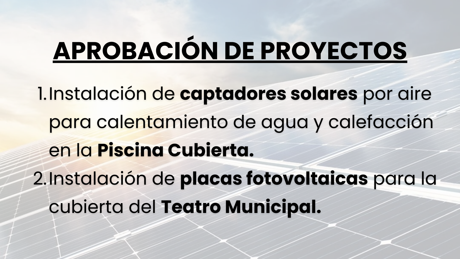 Aprobados dos nuevos proyectos de eficiencia energética en las cubiertas de la piscina y el teatro