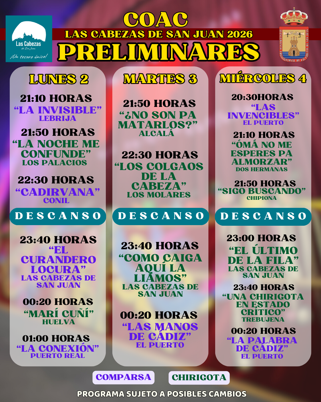 Orden de actuaciones del Concurso de Agrupaciones Carnavalescas 2026 de Las Cabezas de San Juan.