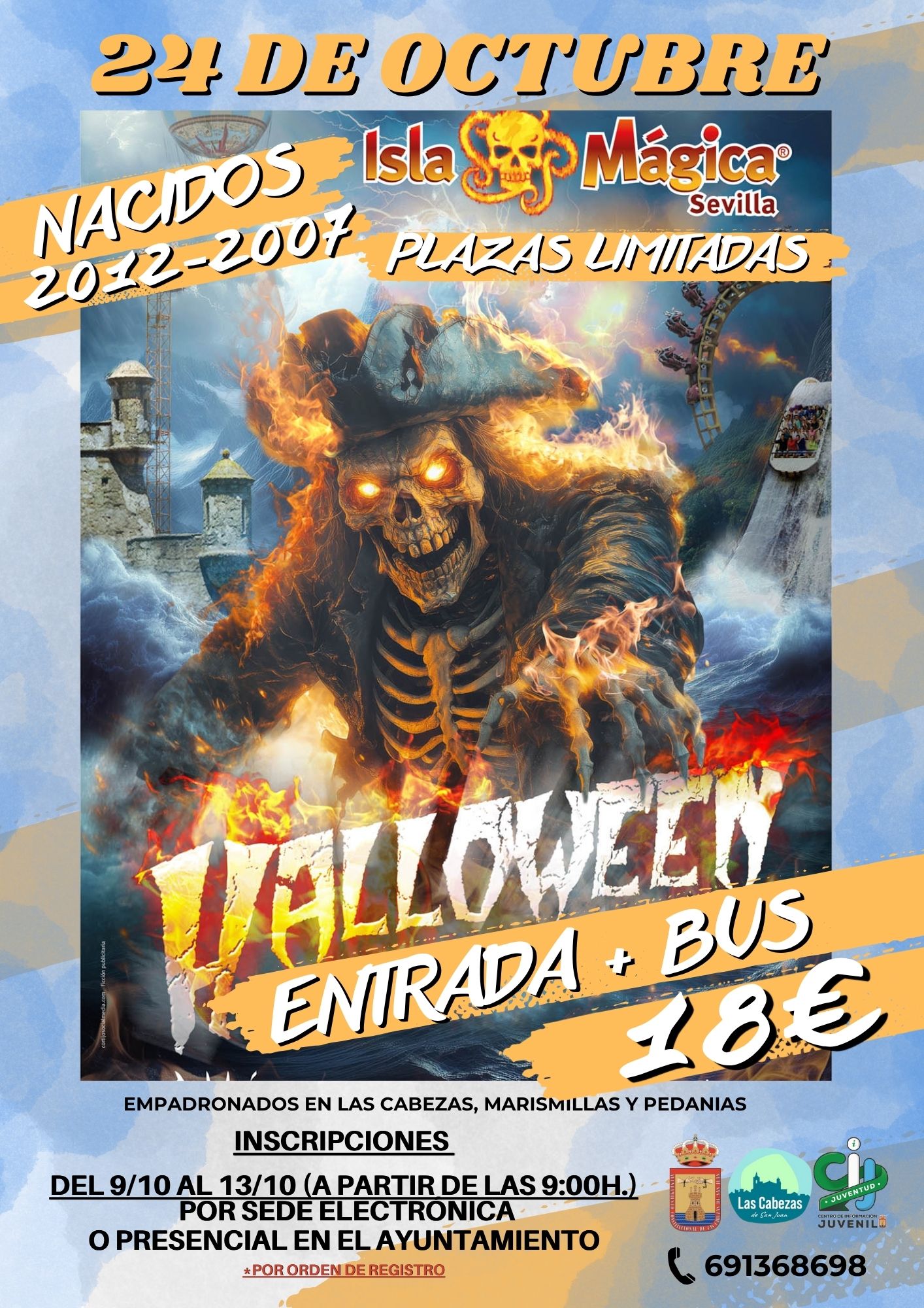 El 24 de octubre, el Ayuntamiento de Las Cabezas de San Juan te lleva a Isla Mágica (Sevilla) para disfrutar del parque en su versión más terroríficamente divertida. La delegación de Juventud plantea esta experiencia que seguro hará disfrutar a muchos jóvenes de nuestra ciudad.