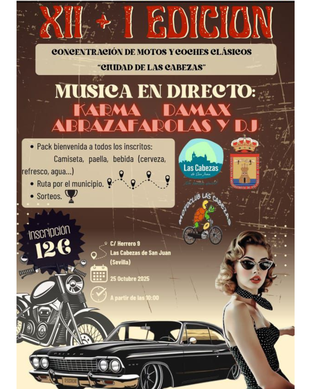 ️ Las Cabezas de San Juan se prepara para rugir con la XIII Edición de la Concentración de Motos y Coches Clásicos “Ciudad de Las Cabezas”
