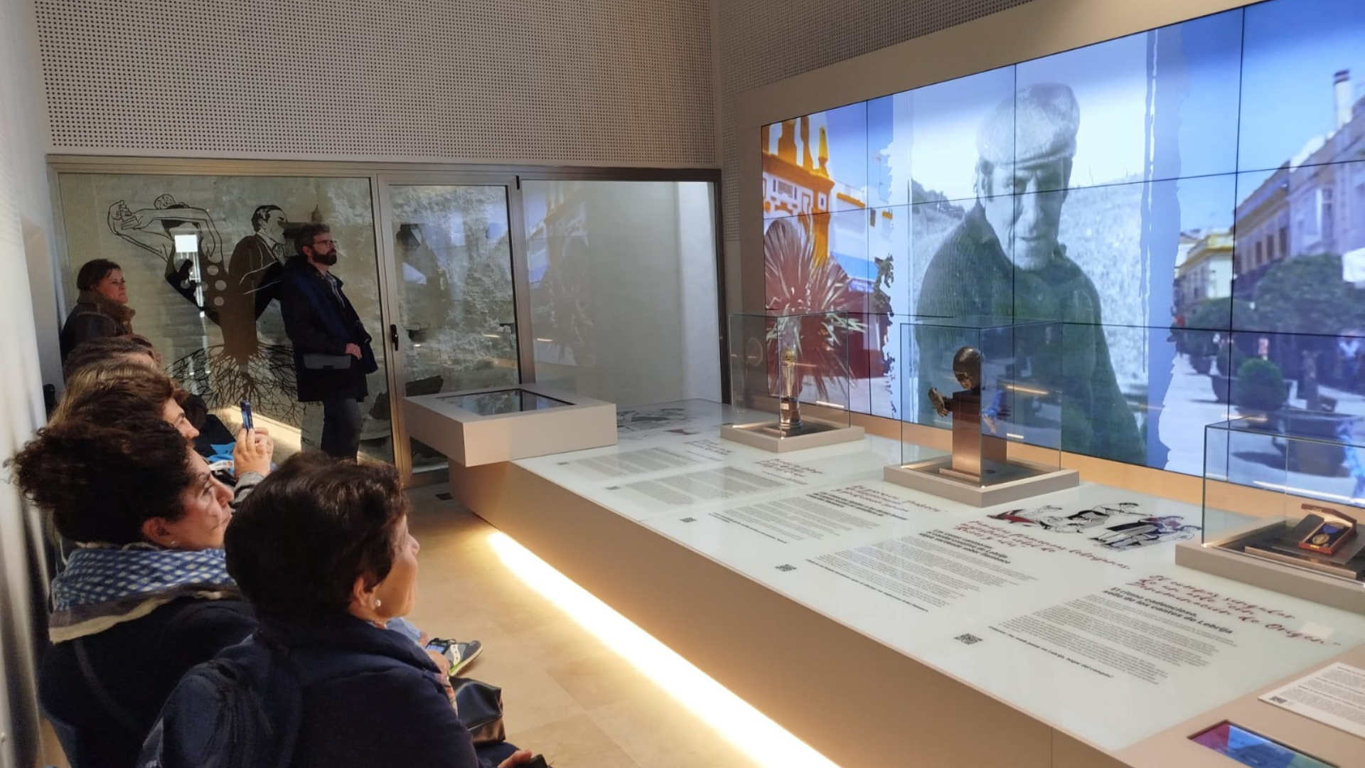 Por la tarde, el grupo se trasladó a Las Cabezas de San Juan atravesando la marisma, donde se pudieron apreciar los cultivos, la reserva natural y sus aves. Una vez en el municipio, se visitaron la parroquia de San Juan Bautista y la Colección Museográfica Casa Valcárcel, acompañados por el alcalde, D. José Solano, y los delegados municipales D. Carmelo Gómez (Comercio y Medio Ambiente) y Dña. África Castro (Cultura y Turismo).