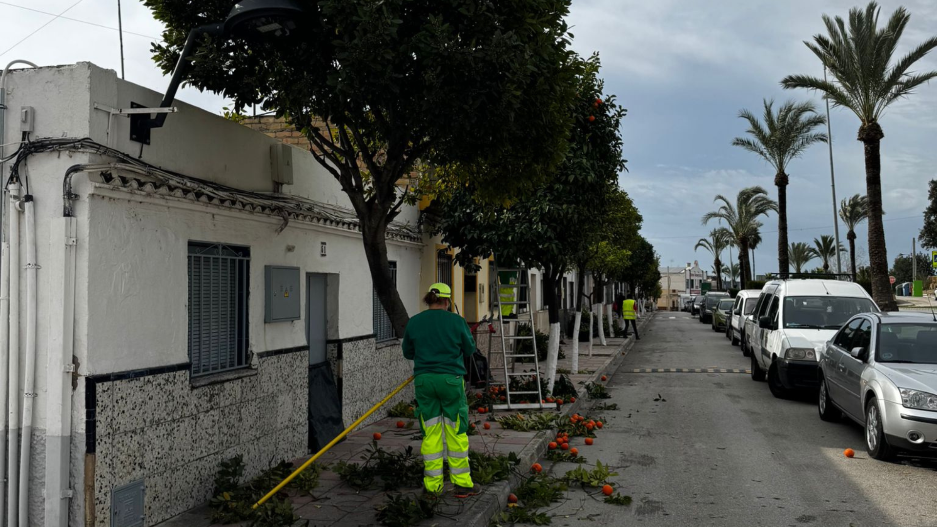 El Ayuntamiento de Las Cabezas de San Juan, a través de la Delegación de Obras, Servicios y Jardines, continúa avanzando en las tareas de poda y mantenimiento de naranjos y otros árboles en diversas zonas del municipio.
