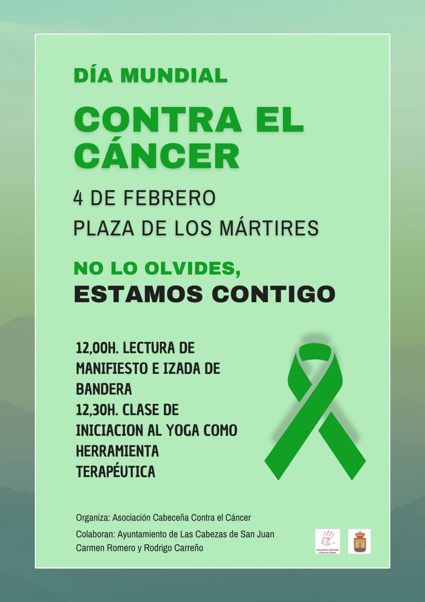 La Asociación Cabeceña Contra el Cáncer conmemorará, este domingo 4 de febrero, el Día Mundial de la Lucha contra el Cáncer. con motivo de este día, las integrantes de la asociación local de lucha contra esta enfermedad, con la colaboración de la delegación de Salud del Ayuntamiento, organiza un acto en la Plaza de los Mártires.