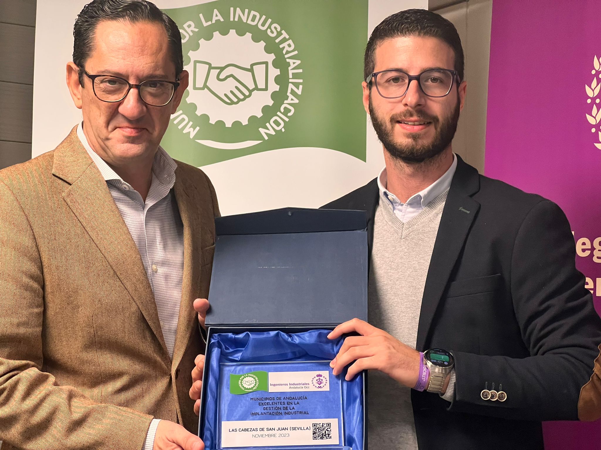 El alcalde recibe el reconocimiento del Colegio de Ingenieros Industriales de Andalucía Occidental que ostentan 18 municipios de la Comunidad.