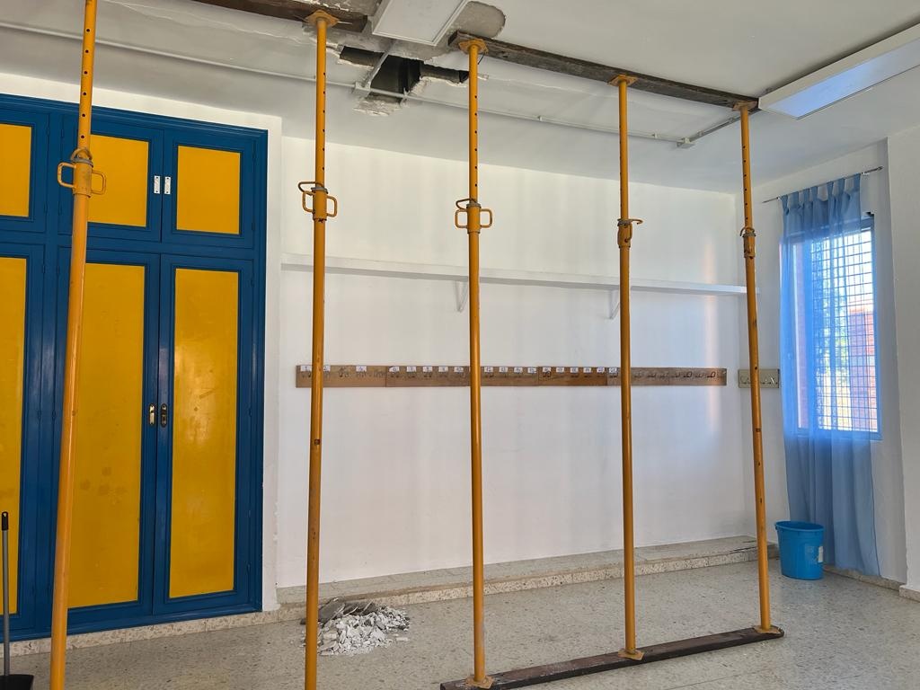 La construcción más antigua del complejo educativo, que acoge a 115 niños y niñas y a sus docentes, ha mostrado daños en una viga. Desde el Consistorio, junto con la dirección del centro, se ha decidido trasladar las cinco clases a otras dependencias del mismo colegio.