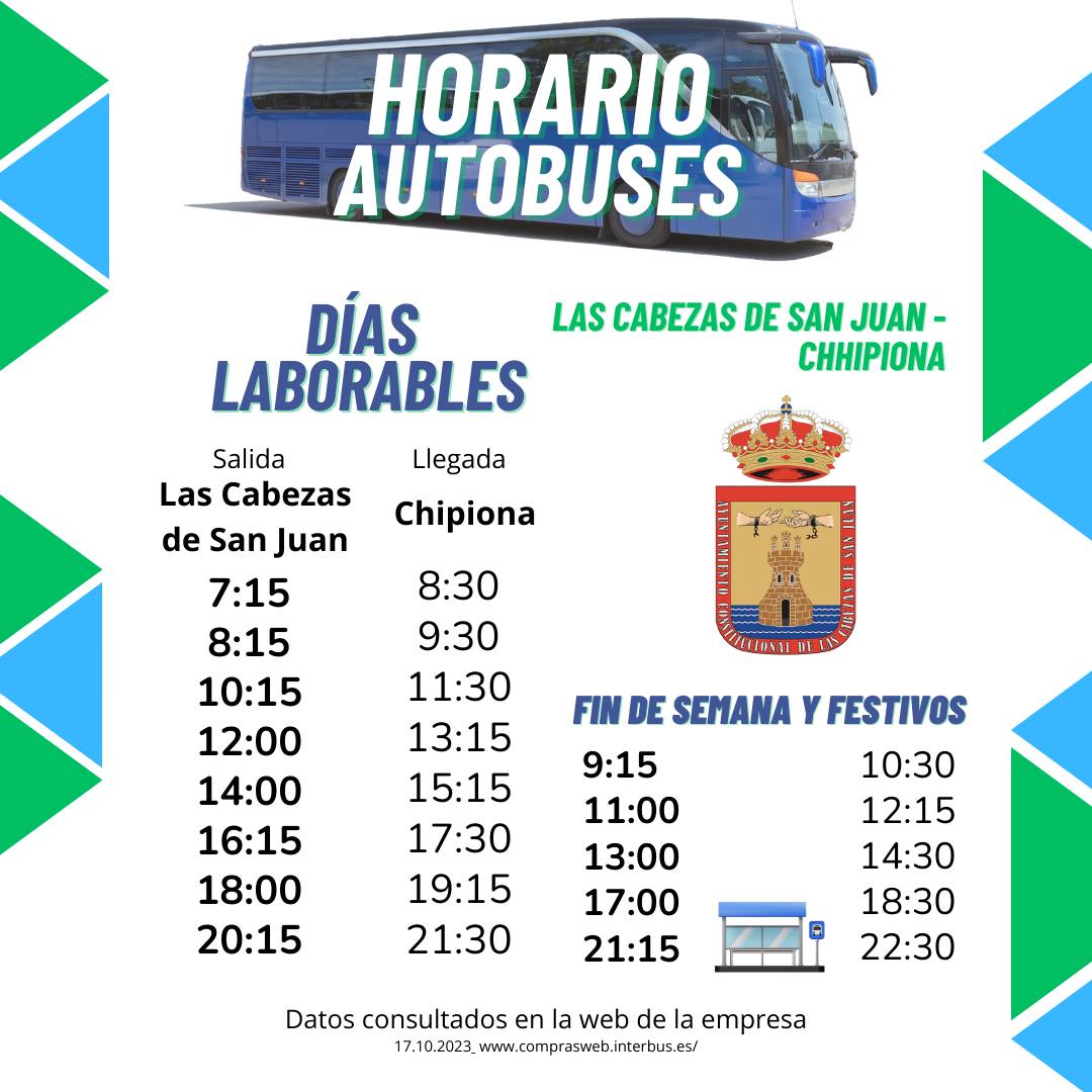 En este apartado os dejamos la información actualizada (detalla en la imagen) de los horarios de autobuses de la línea que conecta Chipiona con nuestro municipio.