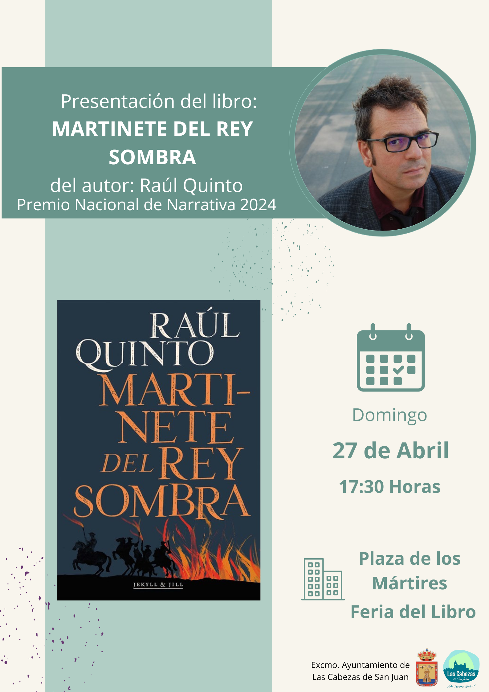 Ganador del Premio Nacional de Narrativa 2024, Raúl Quinto nos visita con esta obra que explora memoria, arte y política desde una mirada radical y poética. La presencia de uno de los autores más valorados del panorama literario nacional es una oportunidad única para nuestro municipio.